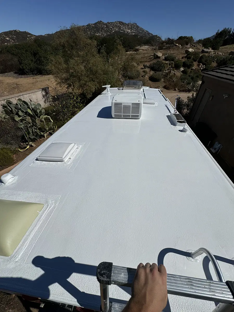 A durable, waterproof layer that protects your RV roof from UV rays, extreme temperatures, and leaks. It ensures long-lasting performance, reduces maintenance, and keeps your RV cooler.